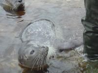 Können diese Augen lügen? Nein auf keinen Fall!! Paula (der Seehund)möchte eindeutig was zu Futtern und was bietet sich da besser an als ein leckerer Fisch? Es gibt wohl nicht viele andere Möglichkeiten die kleine Paula glücklich zu machen!*grins* Wer die Süße Paula und ihre anderen 4 Freunde Sammy,Charly und Co kennenlernen möchte der muss einfach mal im Westküstenpark in St Peter Ording vorbeischauen! Das lohnt sich wirklich,denn die Seehundshow und Fütterung ist echt ein Höhepunkt im Westküstenpark!!